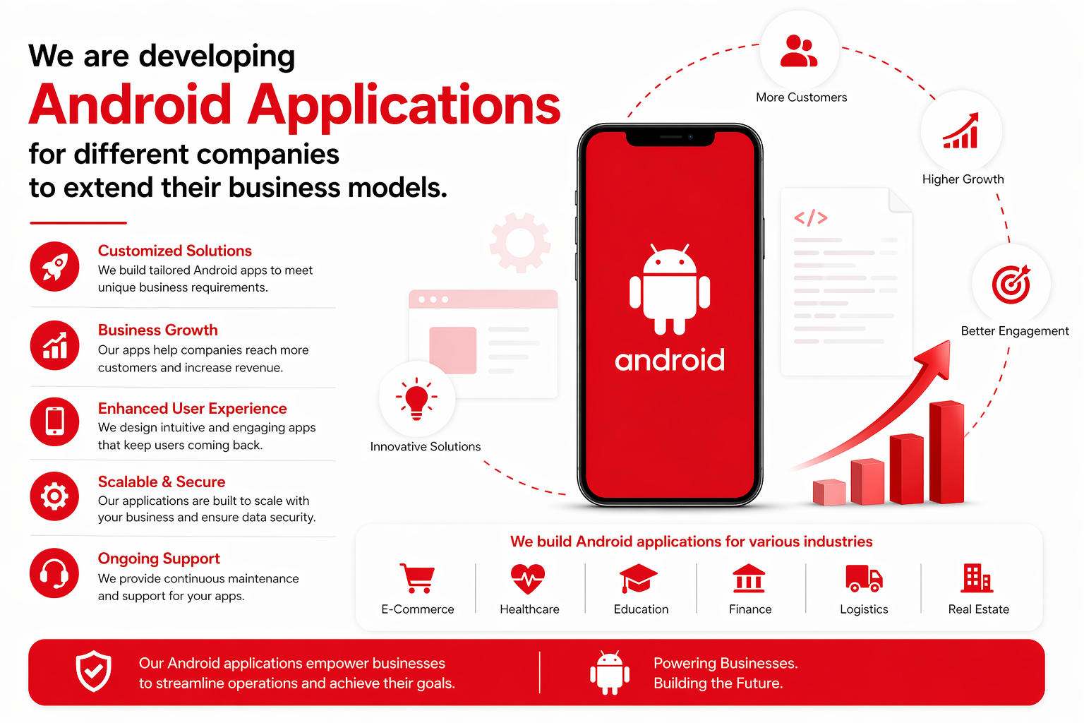 We specialize in creating custom Android apps that turn your ideas into high-performing digital solutions. With cutting-edge technology and strong industry experience, our team delivers seamless, user-friendly applications tailored to your business needs.